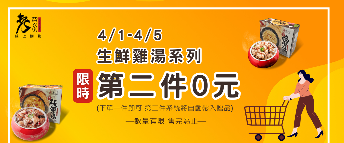 購買生鮮雞湯系列第二件只要0元!
