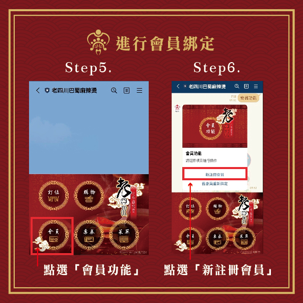 1.請至LINE搜尋『老四川巴蜀麻辣燙』官方帳號,即可加入會員並進行會員綁定,不需繳交任何費用,並可獲得不定期的活動訊息分享,即時訊息確認,無需等待。