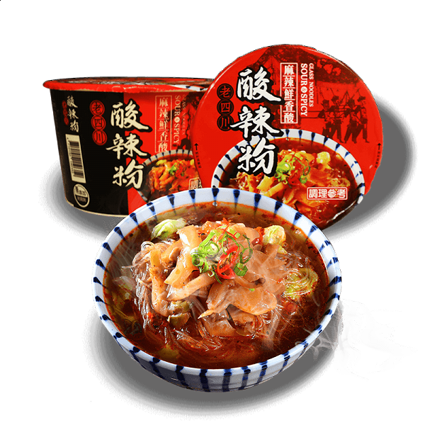 掀開碗蓋後,撕開調理醬包、乾燥蔬菜包、醋包及調味粉包倒入碗內,加入沸騰開水(約500毫升),將碗蓋蓋回原處,保持5分鐘後,拌勻即可食用