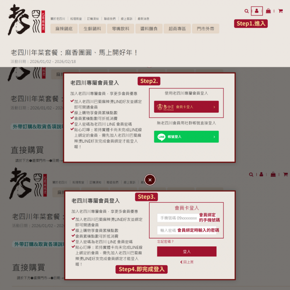 請於下方➊選擇門市→➋日期→➌取貨時段→➍選購商品。另外提醒您,將商品加入購物車後,可下拉頁面,繼續選購商品。